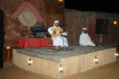 ドバイからのツアーに参加する。午後4時ごろから出発し、まず、ドバイ近郊の砂漠へ行き、4WD車でドライブをする。砂漠を疾走するため、かなり酔うので注意が必要である。砂漠で夕日を見た後、キャンプのような場所へ。アラビアンナイトの始まりである。食事をしながらベリーダンスを鑑賞できる。ドバイには午後10時に戻る。主催している旅行社はたくさんある。